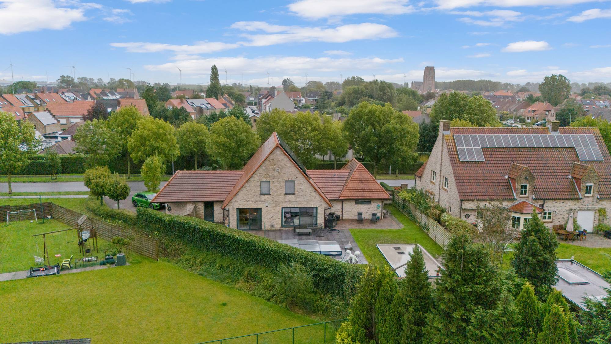 Ruime outdoorparking. De villa werd eveneens voorzien van zonnepanelen, een alarmsysteem, een laadpaal...