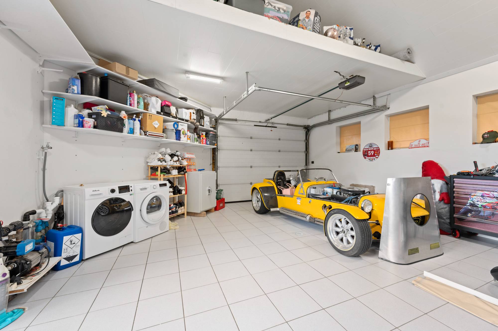 Inpandige garage en ruimte voor een wasmachine/droogkast.