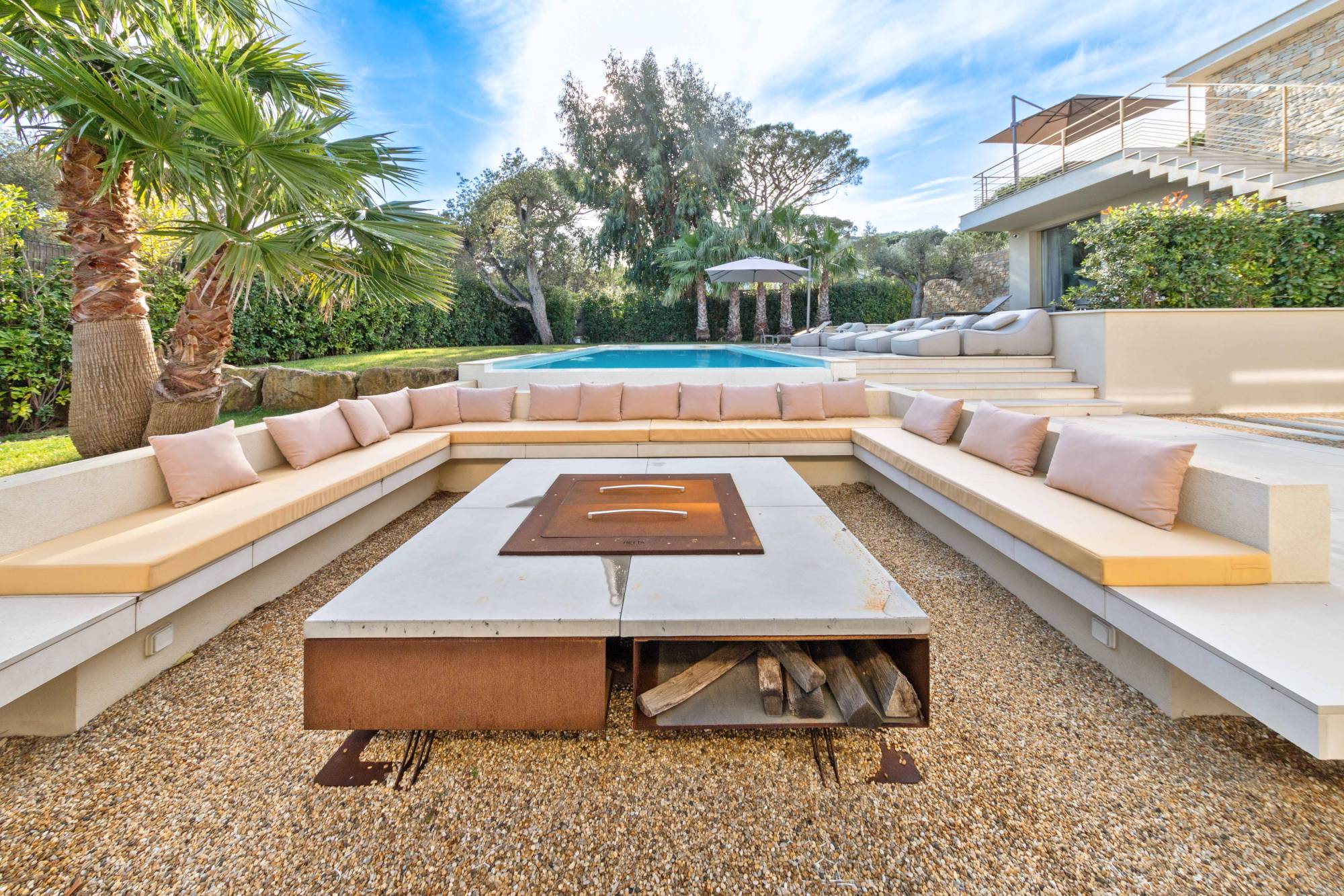 De villa is gelegen op een rustige locatie in Saint-Tropez, in het omheinde woonpark "Le Parc des Salins", op slechts tien minuten lopen van Plage des Salins en op tien minuten rijden van het centrum van het dorp Saint-Tropez.