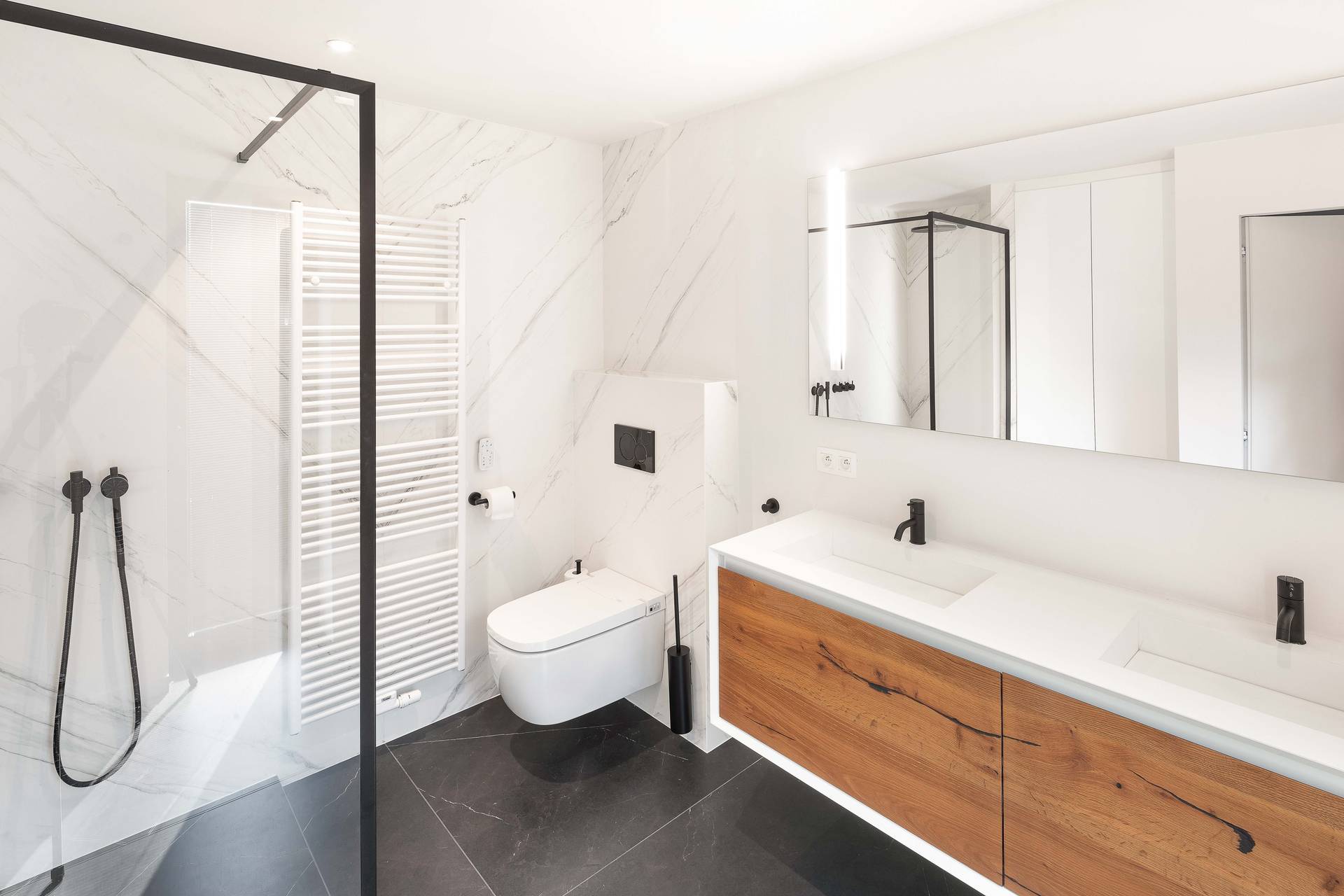 Op de bovenverdieping bevinden er zich nog 3 volwaardige slaapkamers met tal van ingemaakte kasten. De master bedroom beschikt over een afzonderlijke dressing en luxueus ingerichte badkamer. Afzonderlijke douchekamer. Aparte berging.