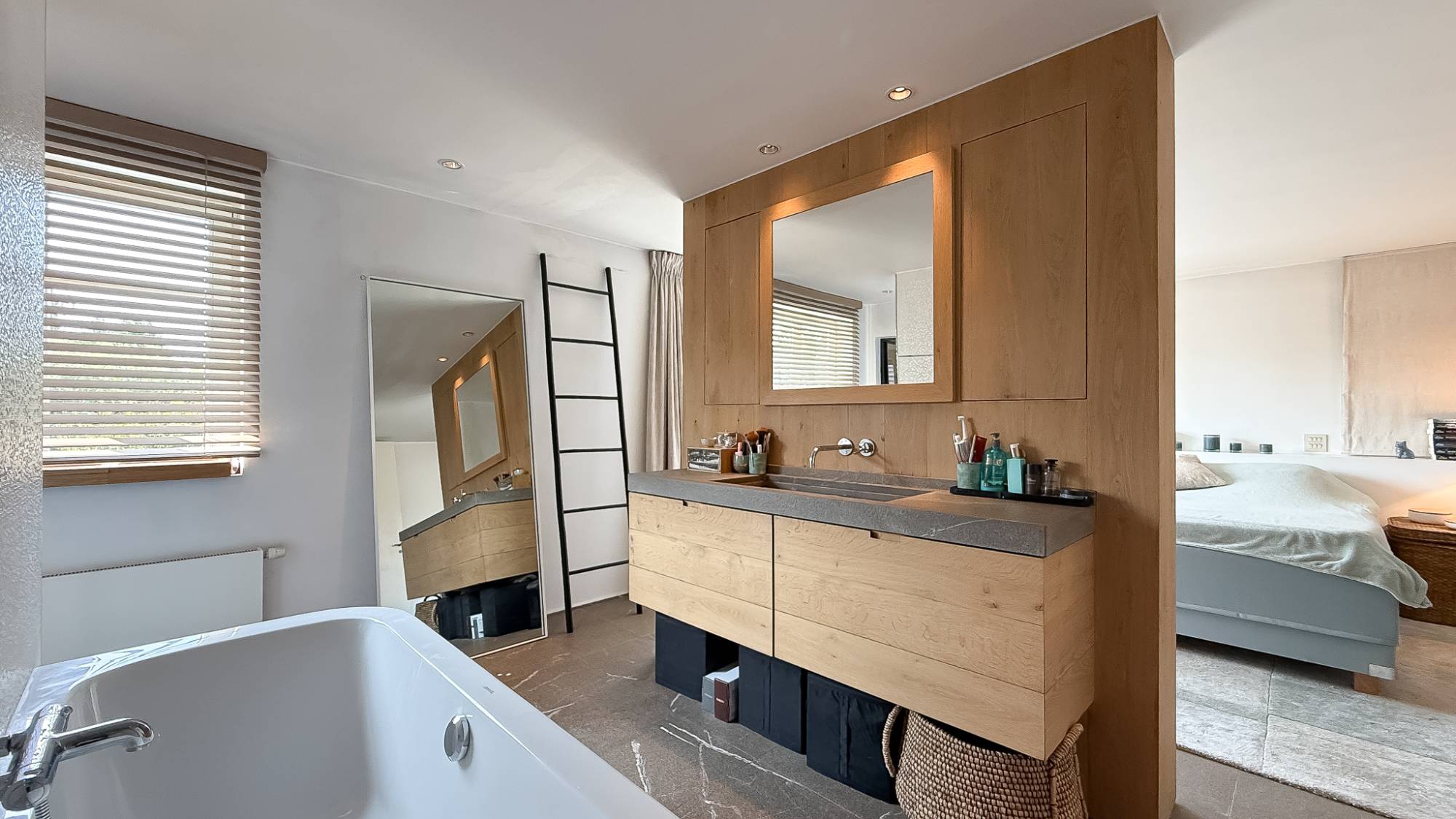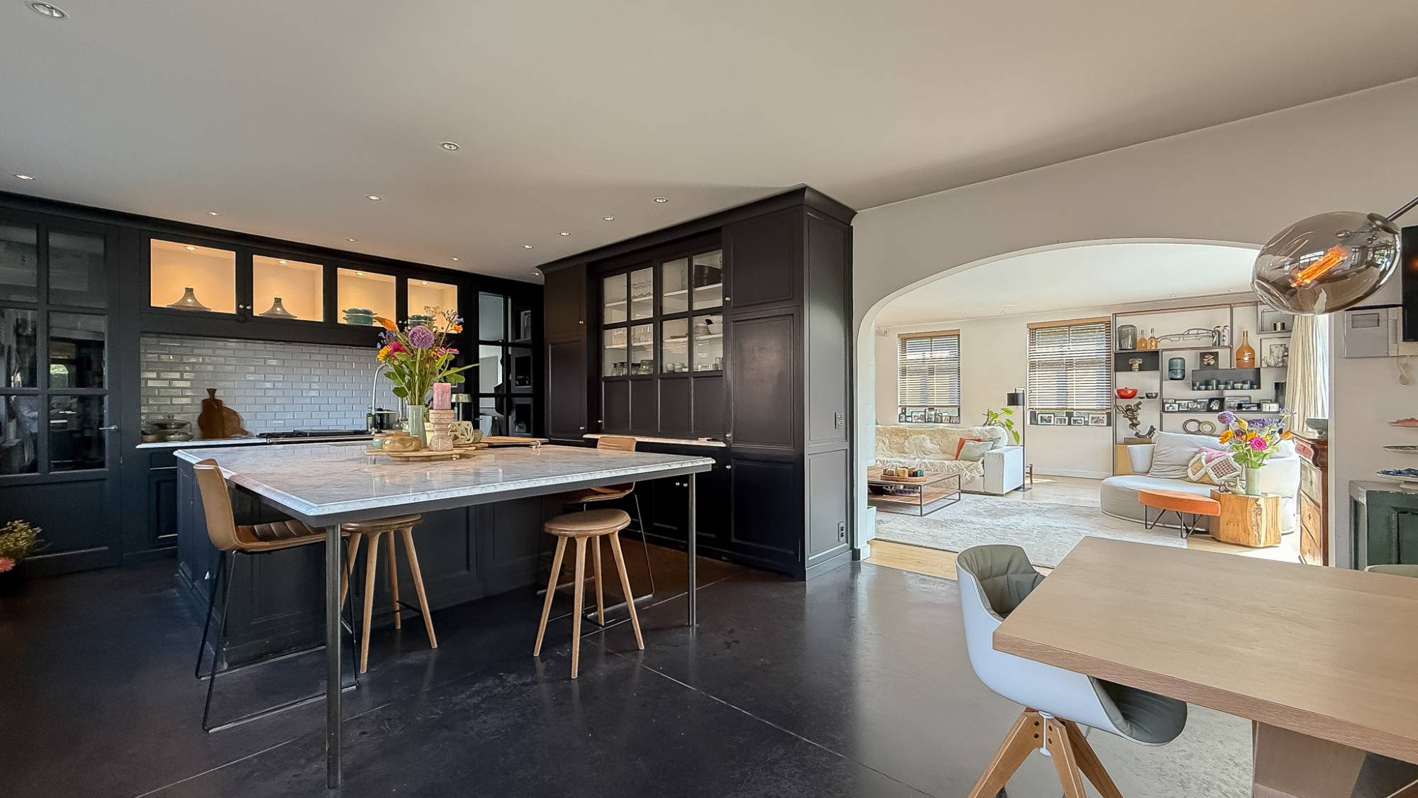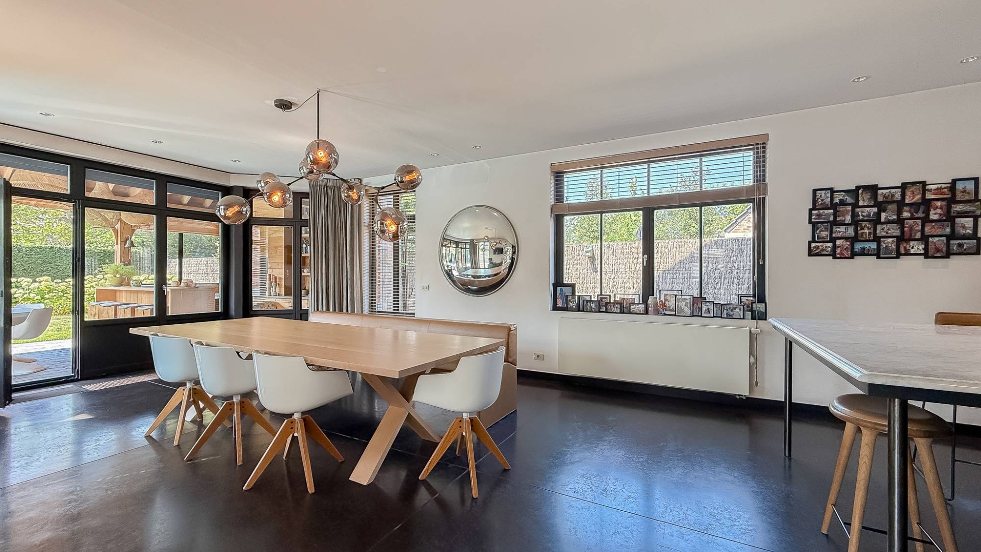 De leefruimte met open haard en eetkamer sluit naadloos aan op de moderne keuken en het overdekte terras met bar en grillhaard – dé plek om samen te genieten, zomer én winter. Op de verdiepingen wachten 5 volwaardige slaapkamers en 4 badkamers, waaronder een master suite met dressing en hammam, ontworpen als privé-oase.