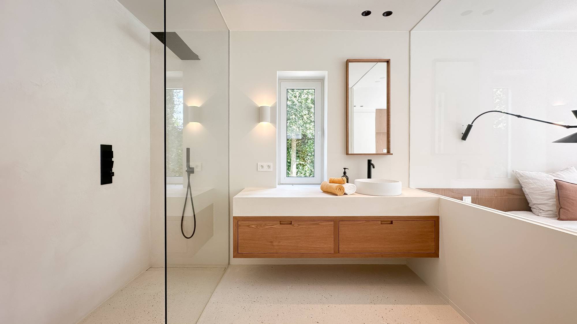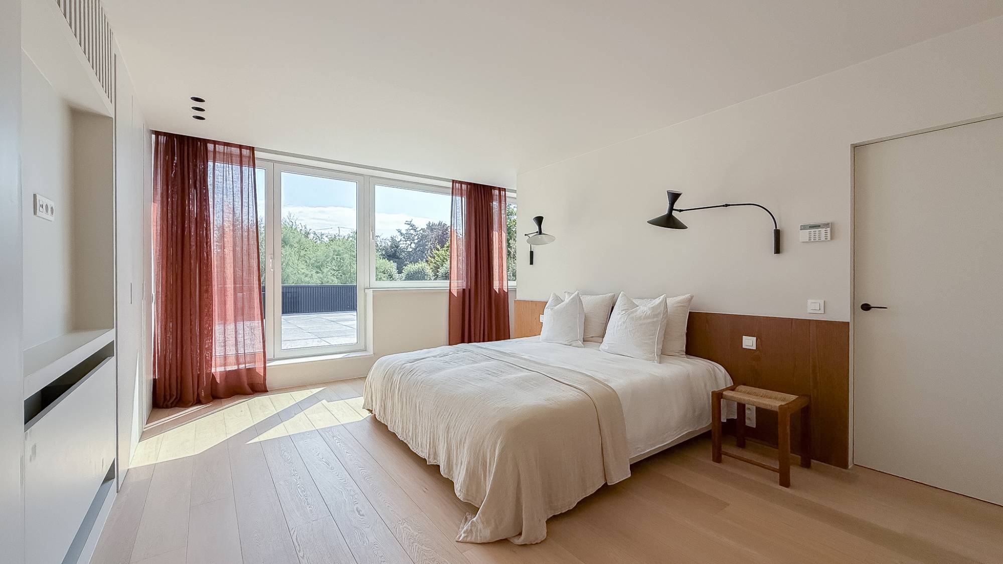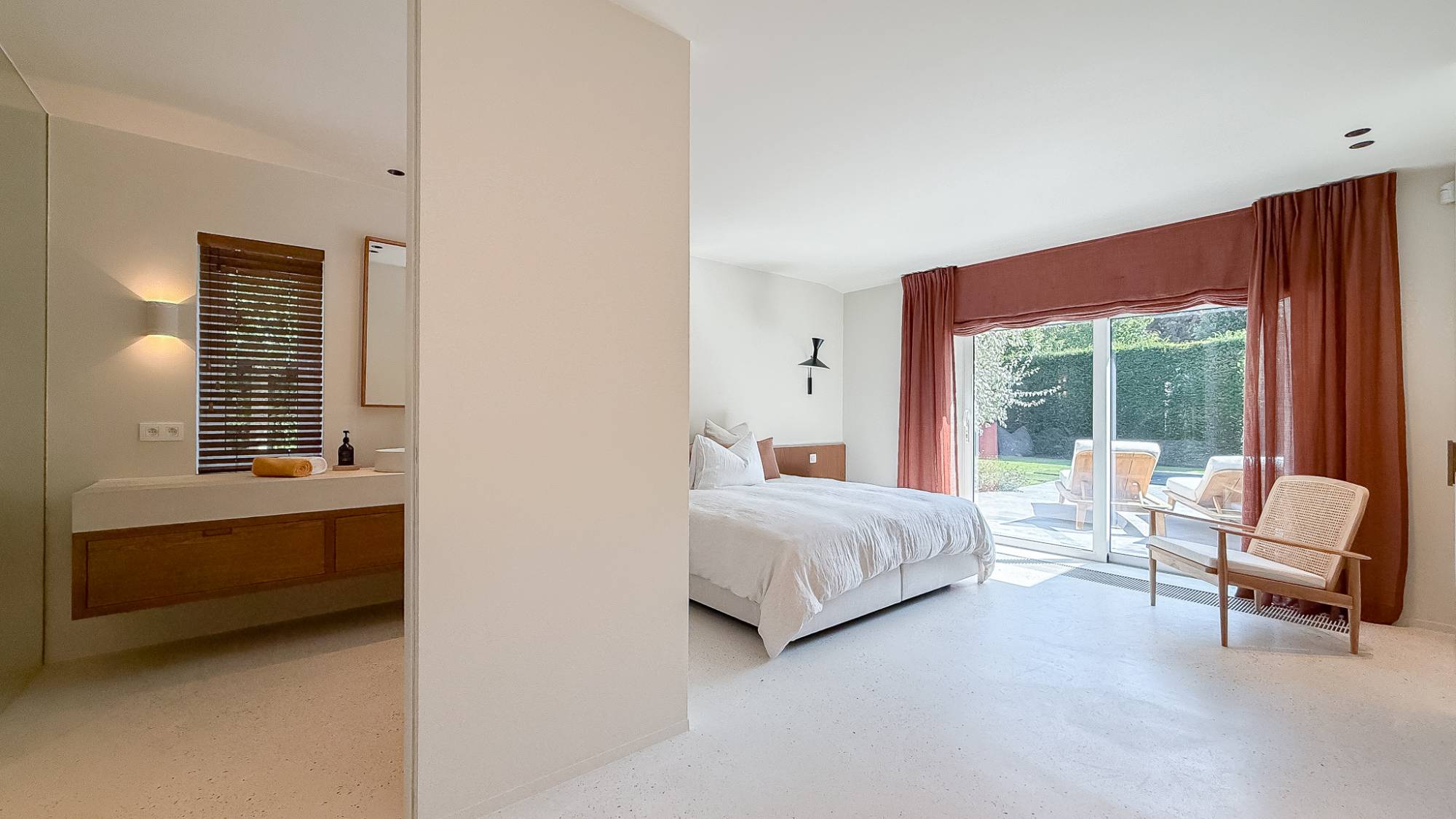 Op dit niveau bevindt zich ook een ruime suite die uitkomt op het terras en beschikt over een eigen, royale douchekamer.