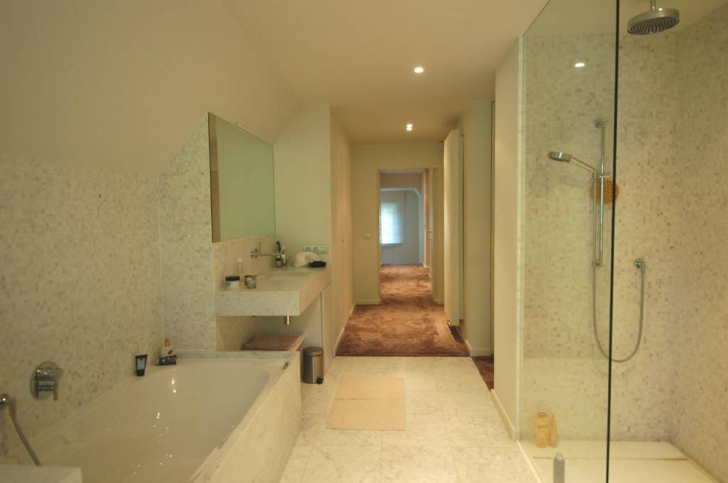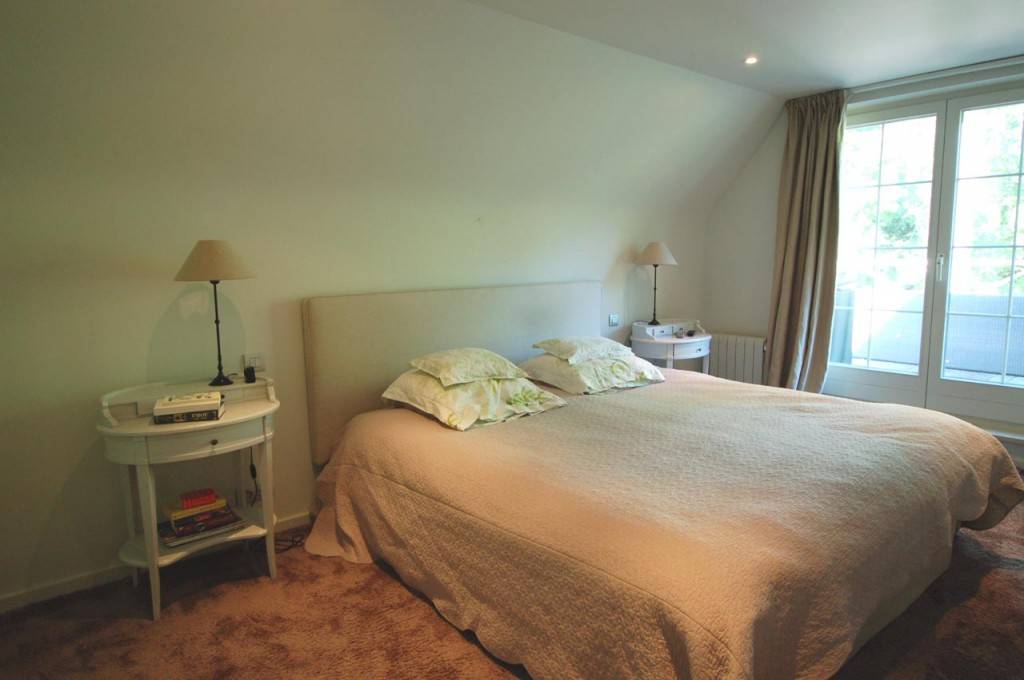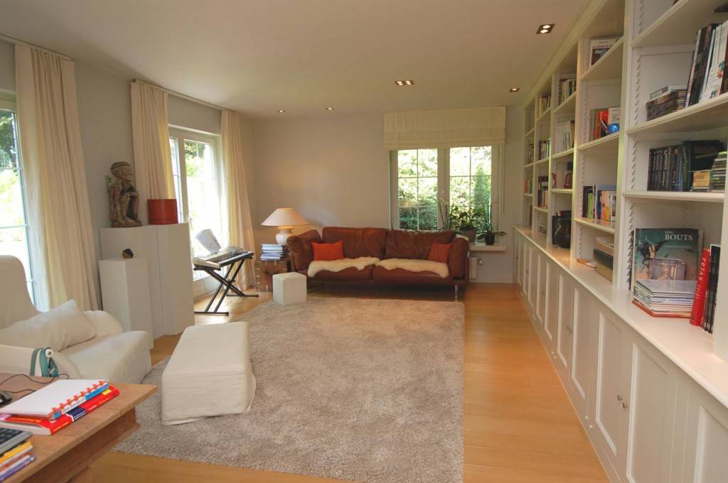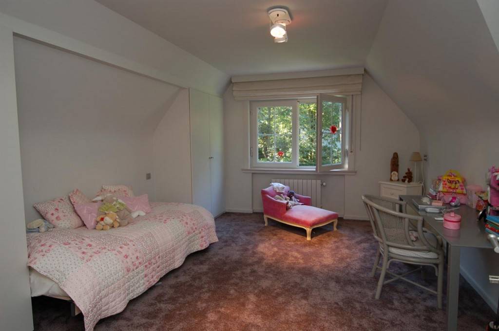 Samenstelling: Inkomhall met toilet en vestiaire. Mooie woonkamer met open haard, die uitgeeft op een prachtige tuin. Eetkamer. Gezellige bibliotheek. aparte keuken, voorzien van alle huishoudelijke toestellen. Aansluitend bijkeuken. Op de 1e verdieping: 3 Aangename slaapkamers met elk hun badkamer. Bureel. Dressing.