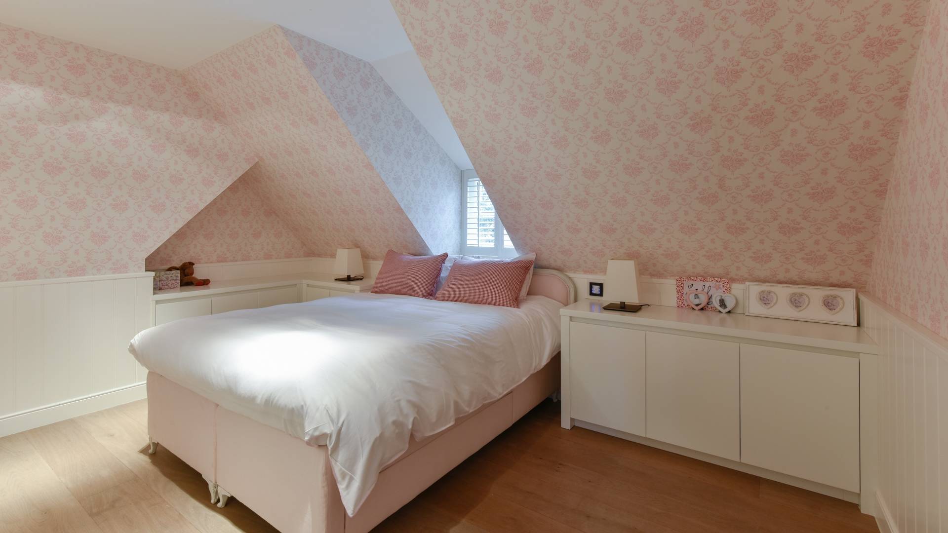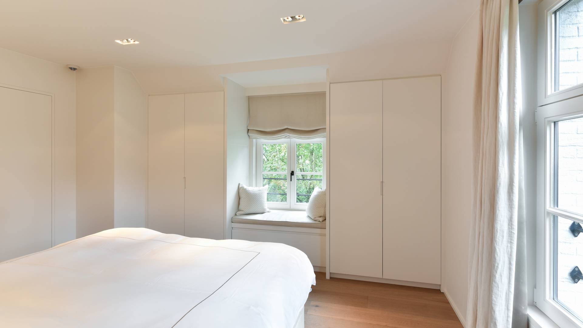 De tweede verdieping beschikt over 2 slaapkamers en een ruime douchekamer met dubbele lavabo.