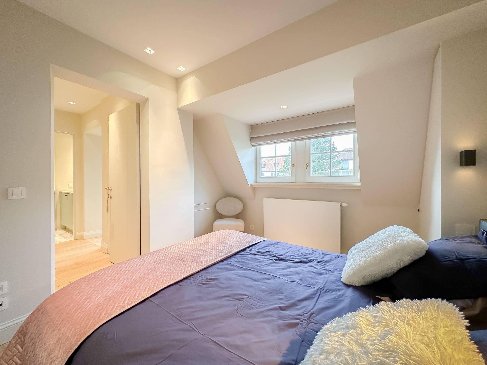 Indeling: Royale inkomhal met gastentoilet en vestiaire. Zeer aangename leefruimte. Aansluitend bevindt zich de eetkamer met een prachtige gashaard, die uitkomt op de zonnige tuin. Ingerichte leefkeuken, met directe toegang tot het terras. Aparte bijkeuken met doucheruimte. Op de eerste verdieping zijn er 3 ruime slaapkamers. De master bedroom heeft een eigen badkamer, luxueus ingericht en een ruime dressing. Slaapkamer 2 heeft ook een dressing. Er is een gedeelde doucheruimte op de overloop. Apart toilet. Op de bovenverdieping zijn er nog 2 grote slaapkamers met een gedeelde badkamer. Apart toilet.