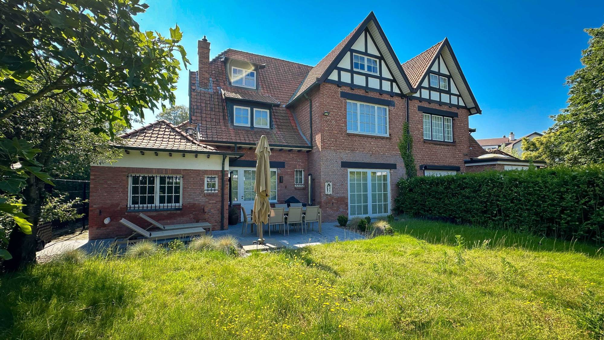 Volledig gerenoveerde, gekoppelde villa "Dennehoek" in cottagestijl, gebouwd in 1927, uiterst gunstig gelegen aan de Prins Karellaan in hartje Zoute...