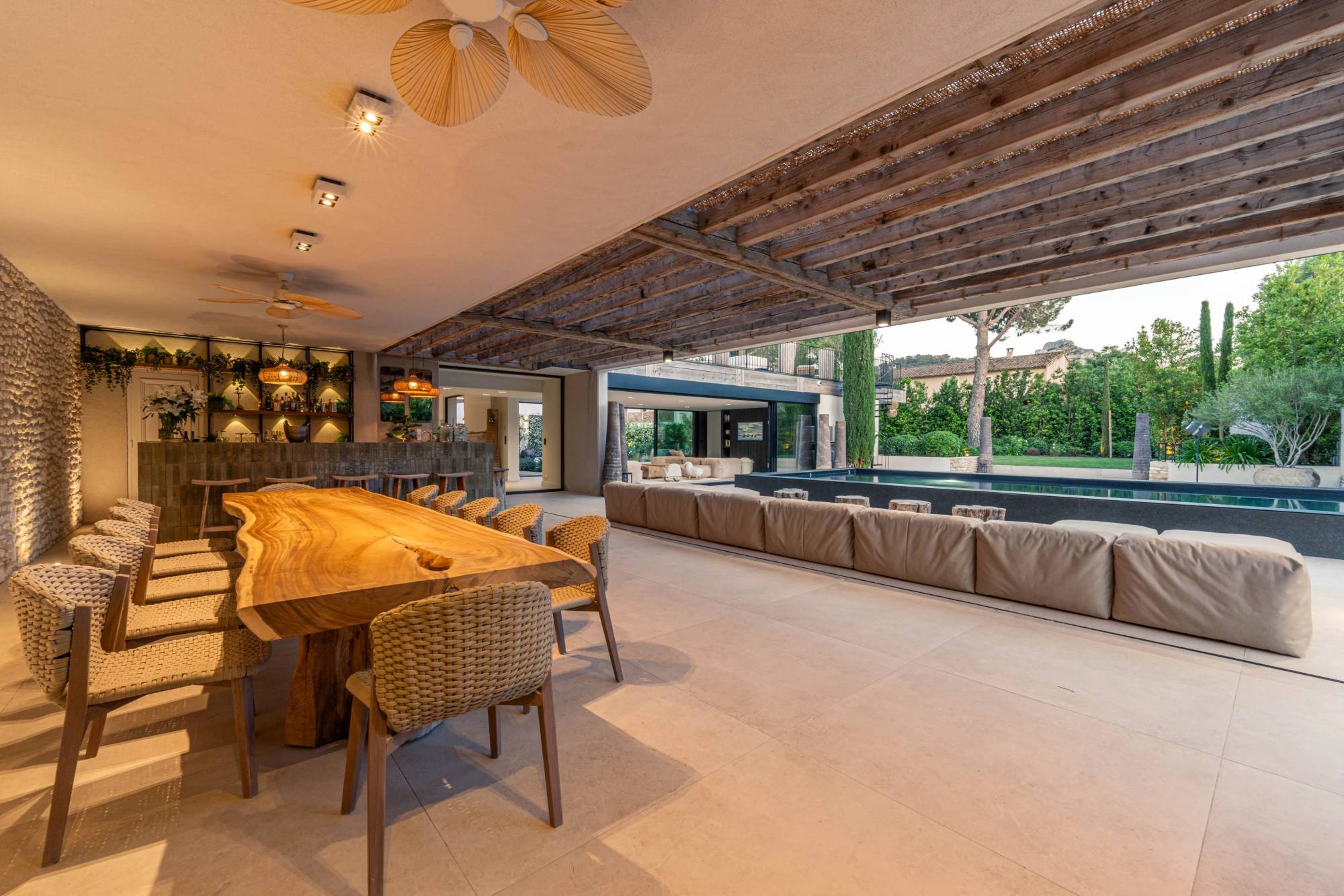 - Poolhouse van 110 m² met bar (professionele koelkast, ijsmaker, vaatwasser), toilet, doucheruimte en kleedkamer.
