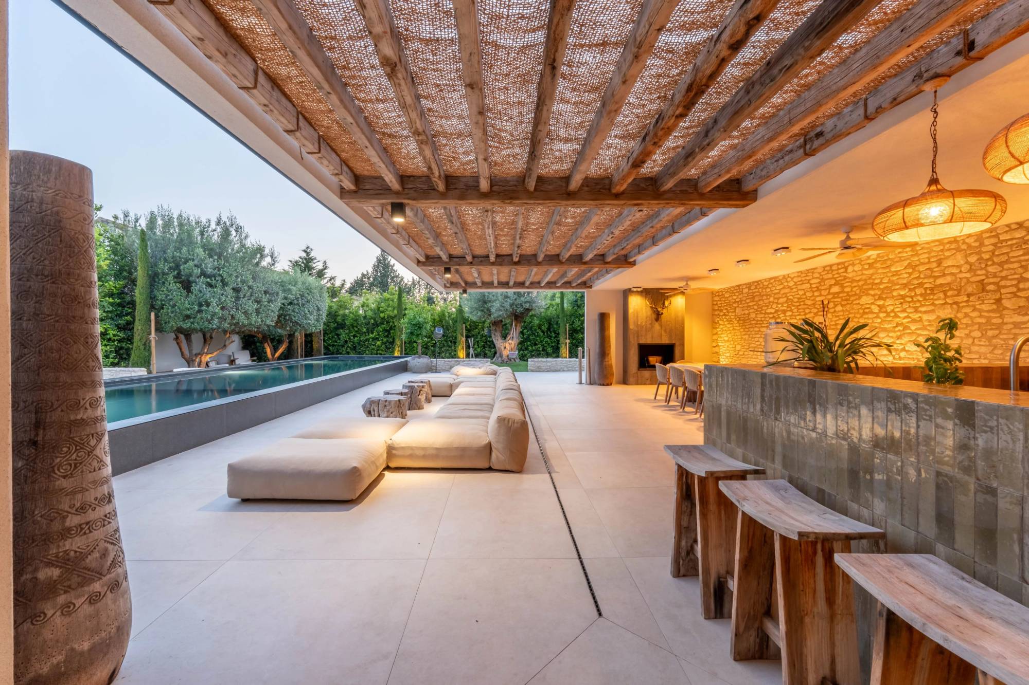 - Overloop naar tv-lounge met toegang tot 75 m² dakterras, prachtig uitzicht op de Alpilles, en buitentrap naar zwembad en poolhouse.