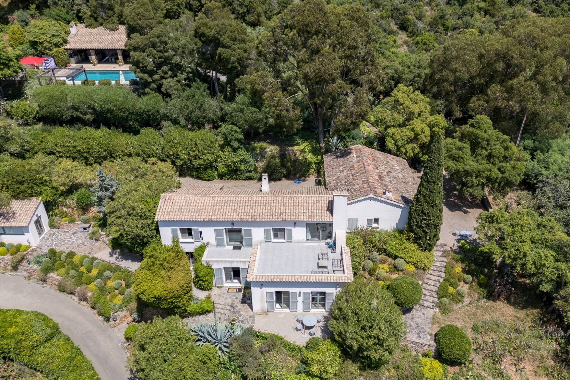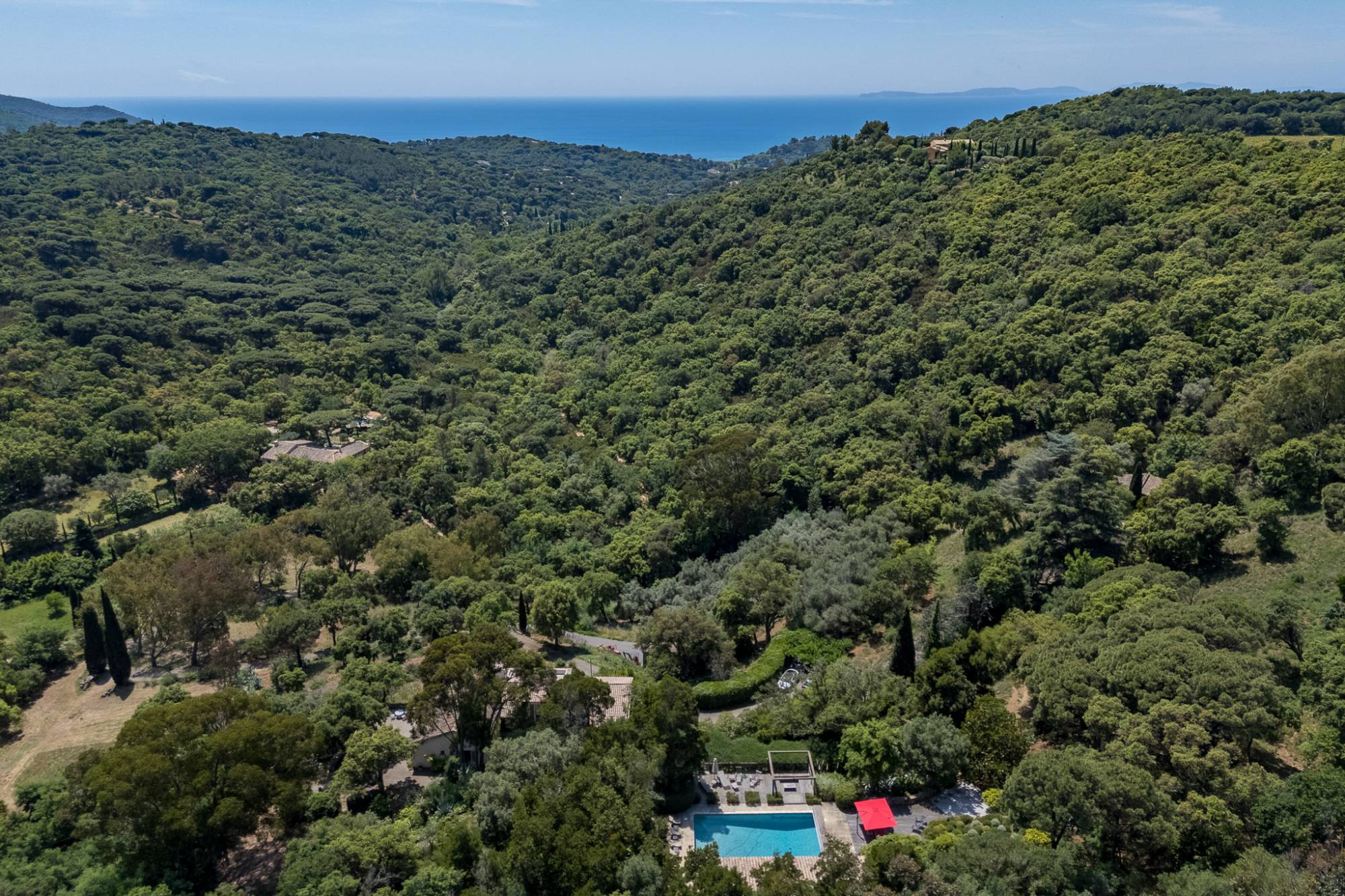 Omringd door prachtige mediterrane vegetatie (olijfbomen, eucalyptus, Libanese ceder, magnolia, peperbomen, kurkeiken, aardbeibomen, enz.) biedt dit eigendom absolute rust en adembenemende panoramische zichten op het Nationaal Park van Port-Cros en de baai van Gigaro in La Croix-Valmer.