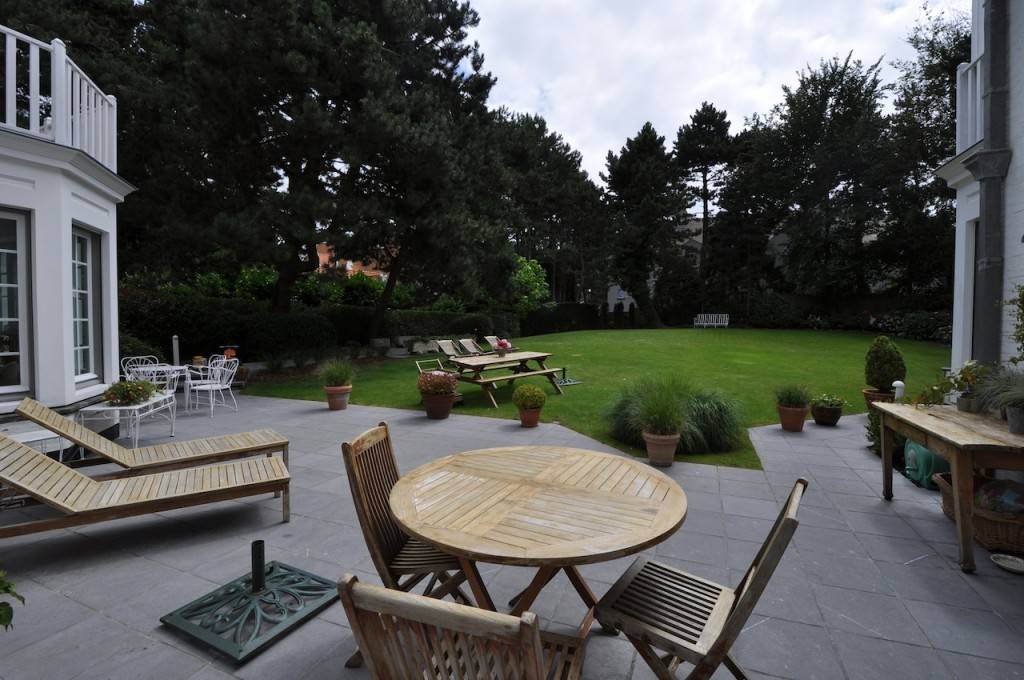 Verscholen in een groen en rustig kader te Knokke-Zoute, en dichtbij de Royal Zoute Golf Club. Een georganiseerde en discrete structuur, bestaande uit hoofdwoning en appartementen voor vrienden en genodigden. Lift over de 4 niveau's. De laatste 2 foto's zijn deze van de appartementen.